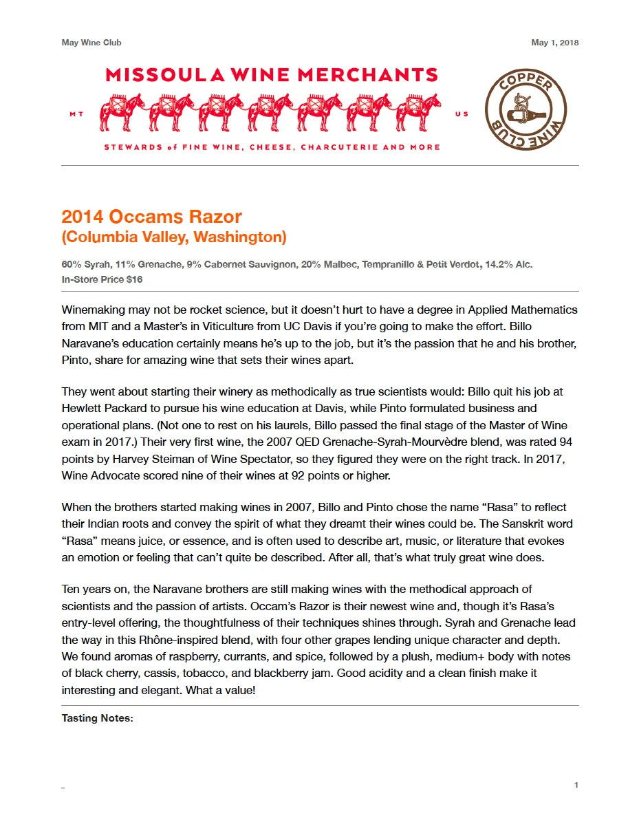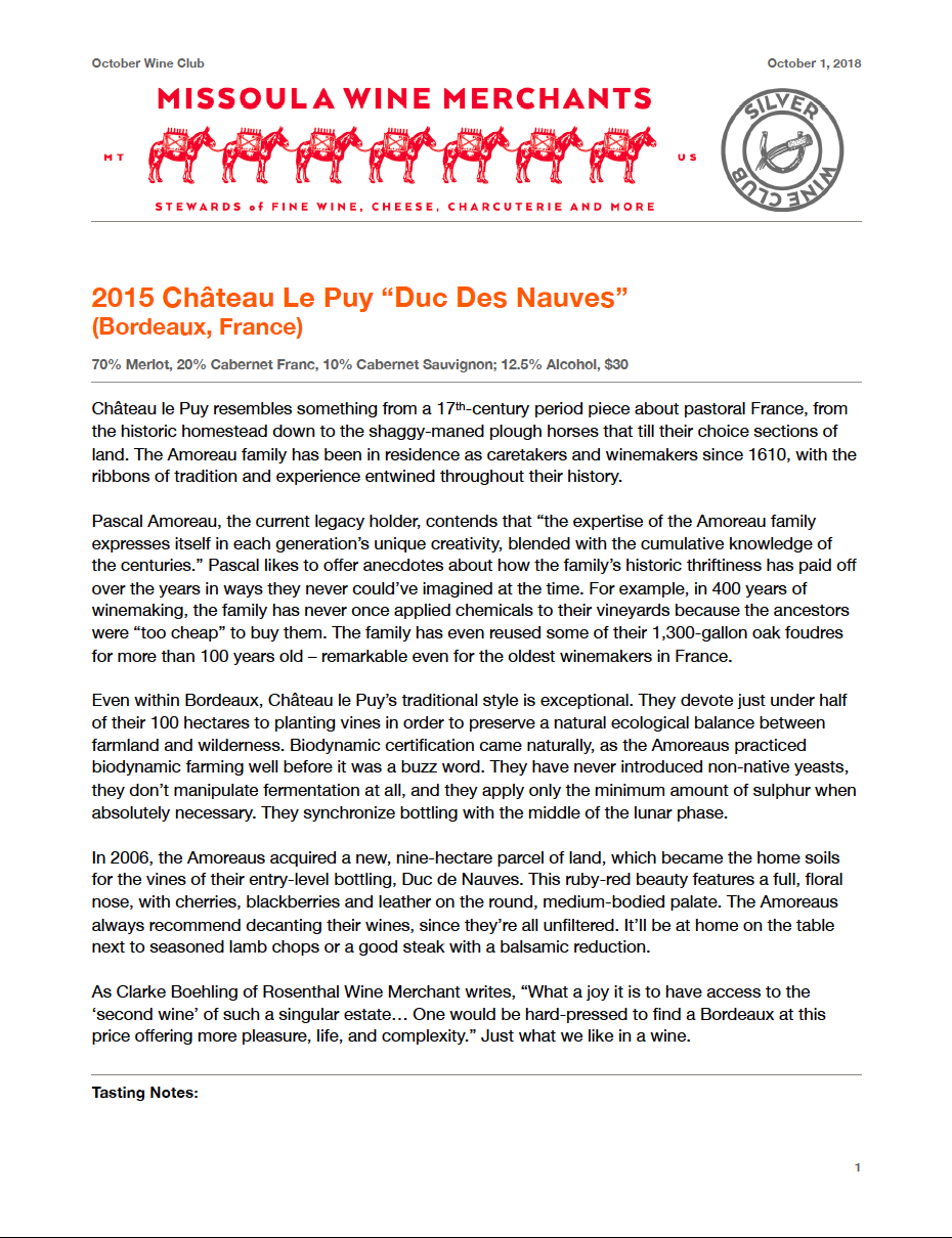 In October 2017, I joined the MWM crew in their mission to bring good wine to Missoulians' tables and, in doing so, help them enjoy the pleasures of sharing a fine bottle with friends and family.